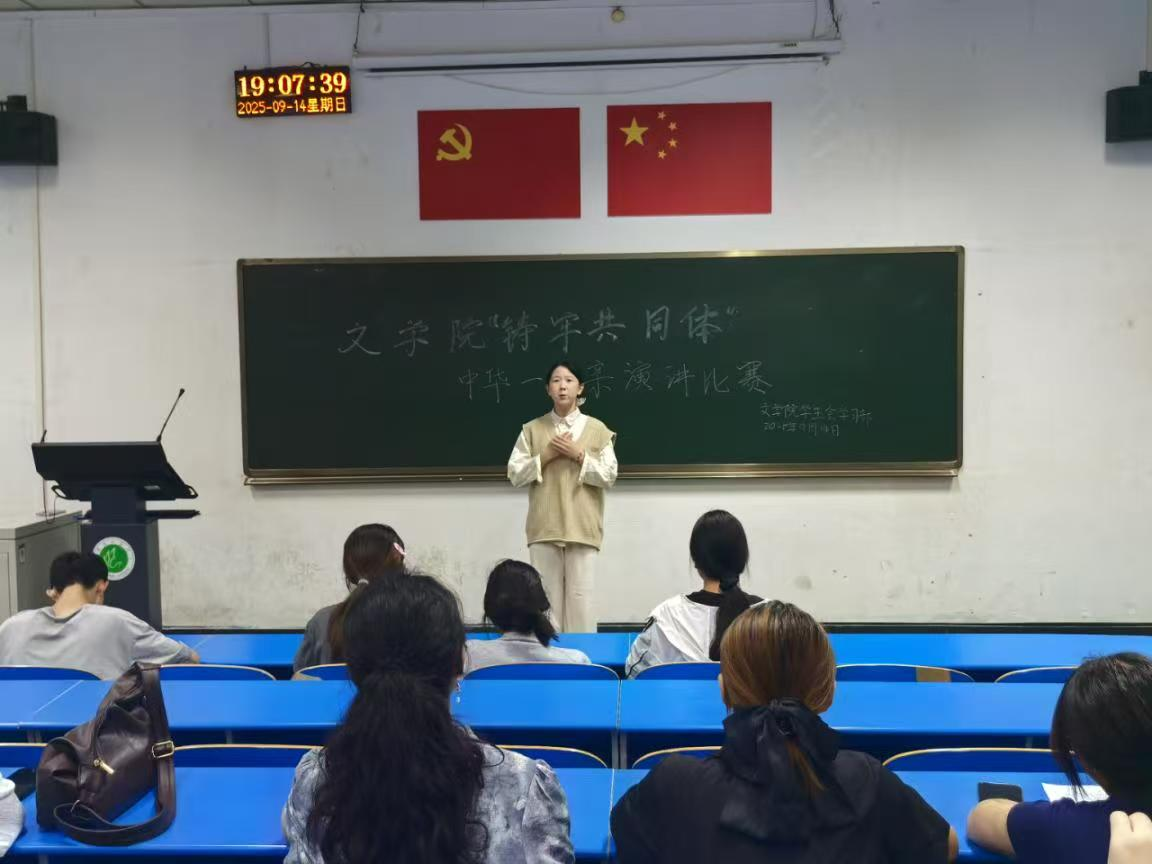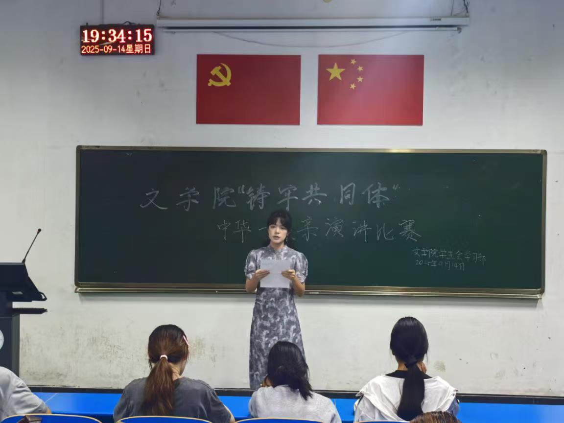 为深入学习贯彻习近平总书记关于加强和改进民族工作的重要思想,宣传贯彻中央、省委、市委民族工作会议精神,进一步铸牢中华民族共同体意识,推进中华民族共同体建设,推动新时代高校民族工作高质量发展,9月14日,文学院在1206教室组织开展了“筑牢共同体,中华一家亲”演讲比赛。