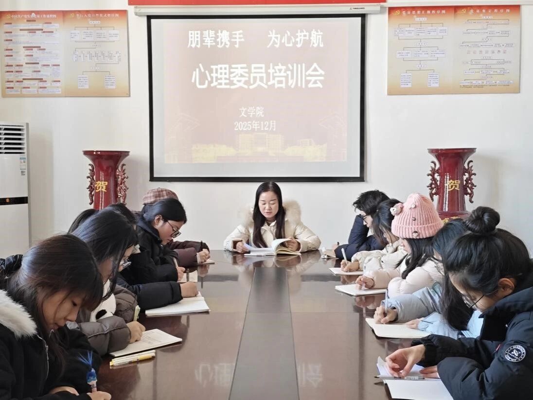 为充分发挥心理委员在学生群体中的朋辈支持作用,进一步筑牢学生心理安全防线,近期,文学院在1422会议室开展“朋辈携手,为心护航”心理委员专题培训会。全院班级心理委员及学生会心理健康部成员参与本次培训,培训由文学院组织员薛小品主讲。