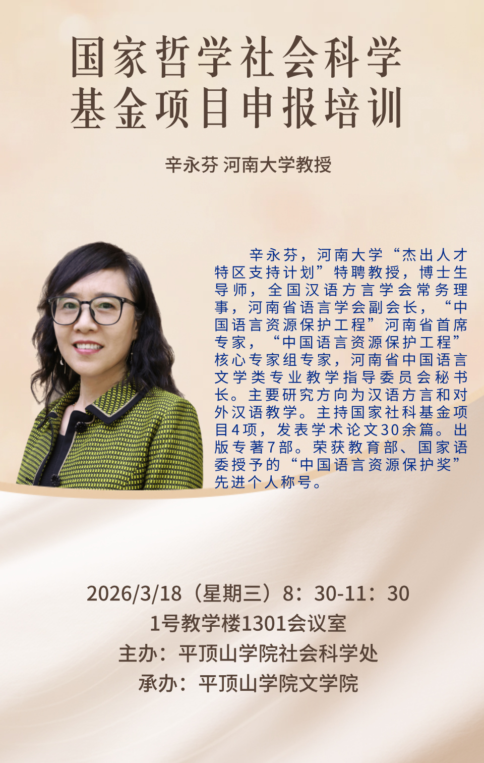 “鼎山讲坛”系列讲座预告 | 3.18 辛永芬——国家哲学社会科学基金项目申报培训