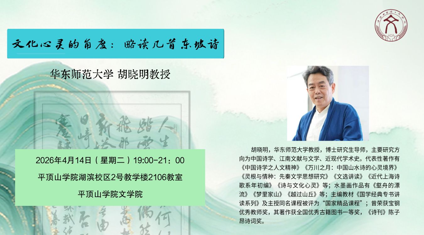 “鼎山讲坛”系列讲座预告 | 4.14胡晓明:文化心灵的角度:略读几首东坡诗