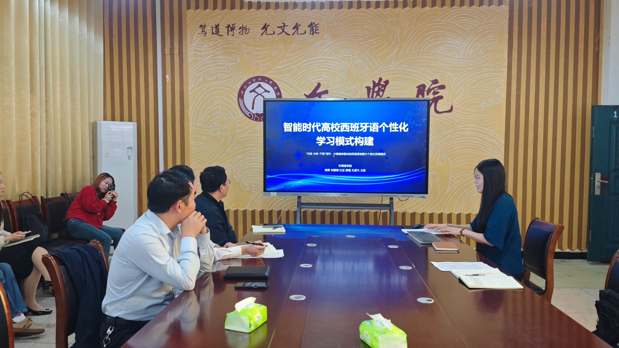 会上,两位老师围绕各自的教改项目核心,系统阐述了人工智能赋能教学的意义和当前教学研究现状,重点分享了基于AI技术构建个性化学习路径的思路与框架。报告过程中,两位老师结合丰富的学生案例,从实践维度直观呈现人工智能的教学价值,展示了AI工具为英语、西班牙语教学进行语法纠错、作业批改、逻辑梳理的精彩技巧,印证了其在辅助教学、提升整体学习效率等方面的显著优势。同时,她们客观审视外语教学的问题,指出AI工具在语言教学场景中的适配短板,并分享了针对性的优化策略。此外,两位老师还就“未来如何推进教学改革以更好适配AI技术”“当下如何高效运用AI工具优化教学流程”等议题与在场教师展开深度研讨,为文学院后续教学创新提供了多元视角与实践参考。