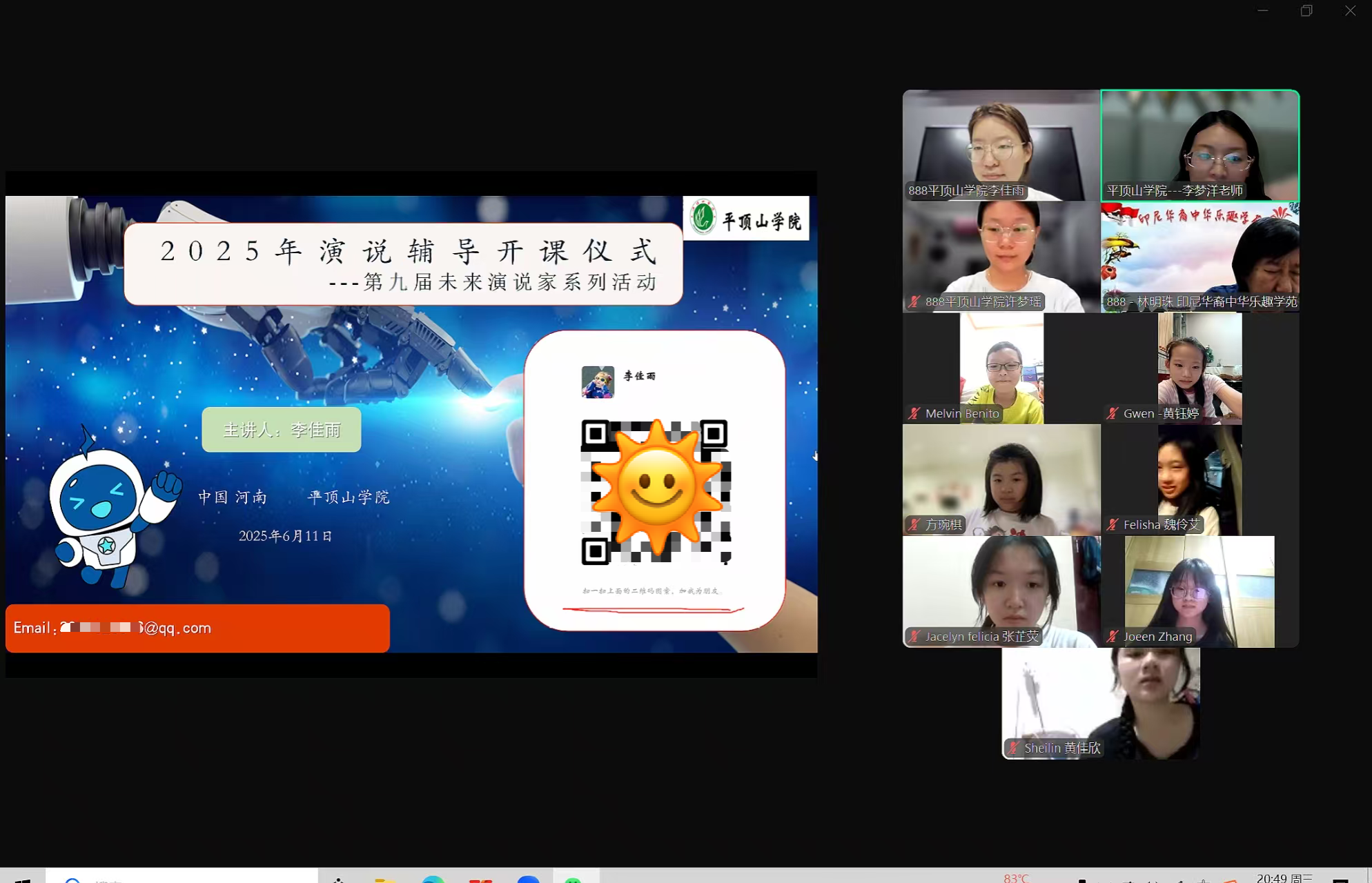 “未来演说家”系列活动由中华儿童文化艺术促进会青少年艺术教育专业委员会指导,中国传媒大学课题组提供学术支持,是面向全球4-18岁青少年的重要中文演说平台,覆盖全球十余万青少年。活动秉持“让孩子说自己的话”的理念,以“演说沟通世界”为宗旨,为海外青少年搭建展示中文能力、促进文化交流的高规格舞台。本届比赛通知发布后,我院青鸢国际中文教育团队受海外实践教育基地——印尼中华乐趣学苑主席林明珠的委托,组建了李梦洋、李佳雨、许梦瑶三人辅导小组,根据印尼参赛选手的个人特点,采用了“一对一精准辅导”教学模式。在6月13日至17日的集训期间,小组实施“一人一策”的个性化指导方案,从演讲稿的深度打磨、中文发音的精准校正,到演讲手势的精巧设计、服装搭配的专业建议,每个环节均进行了精细化指导。这种以学生为中心的教学模式,有效激发了每位选手的潜能,显著提升了他们的综合表现力。