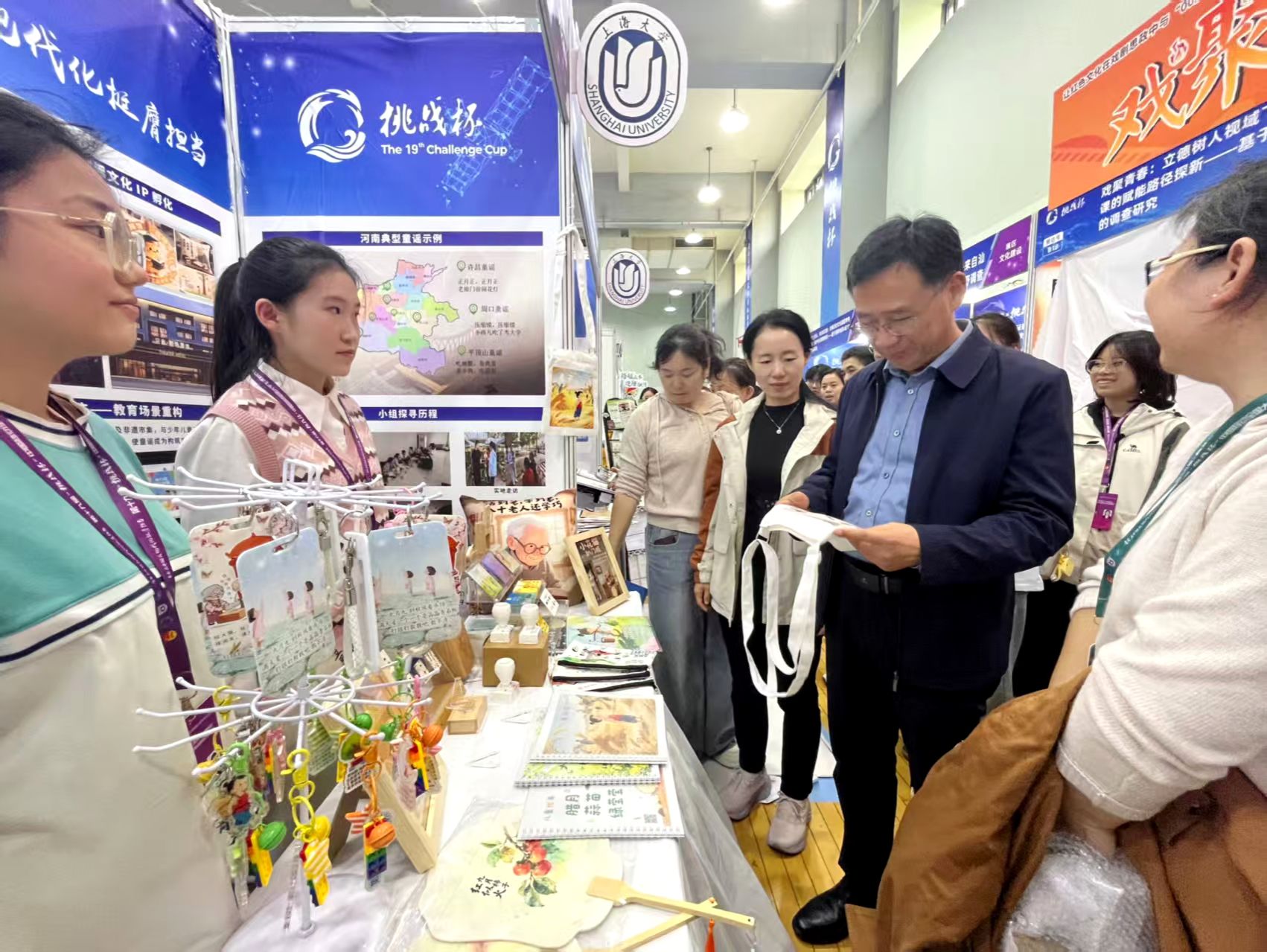 竞赛期间,共青团河南省委二级巡视员王鑫亲临我校展位,认真听取项目介绍,与参赛学生亲切交流,充分肯定了我校师生展现出的科研素养与团队精神。校党委副书记侯延民现场看望参赛师生,详细了解备赛情况,勉励同学们放松心态、从容应战,充分展现我校学子的综合素养与创新实力。