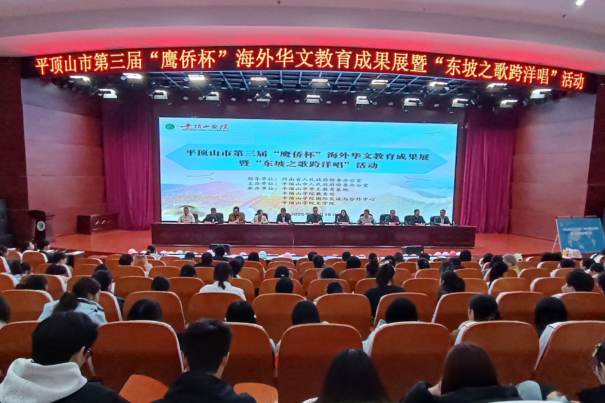 12月18日下午,平顶山市第三届“鹰侨杯”海外华文教育成果展示暨“东坡之歌跨洋唱”活动在我校湖滨校区中心会议室举行。平顶山市侨办主要负责同志,省侨办相关负责同志,华人头条河南频道总编杨泽涛、华人头条河南频道外联部负责人王刘瑜,我校副校长李波、外事部门负责人、文学院负责人出席,文学院青鸢国际中文教育团队全体成员与学生代表参加活动。活动由我校国际交流与合作中心主任王雁冰主持。