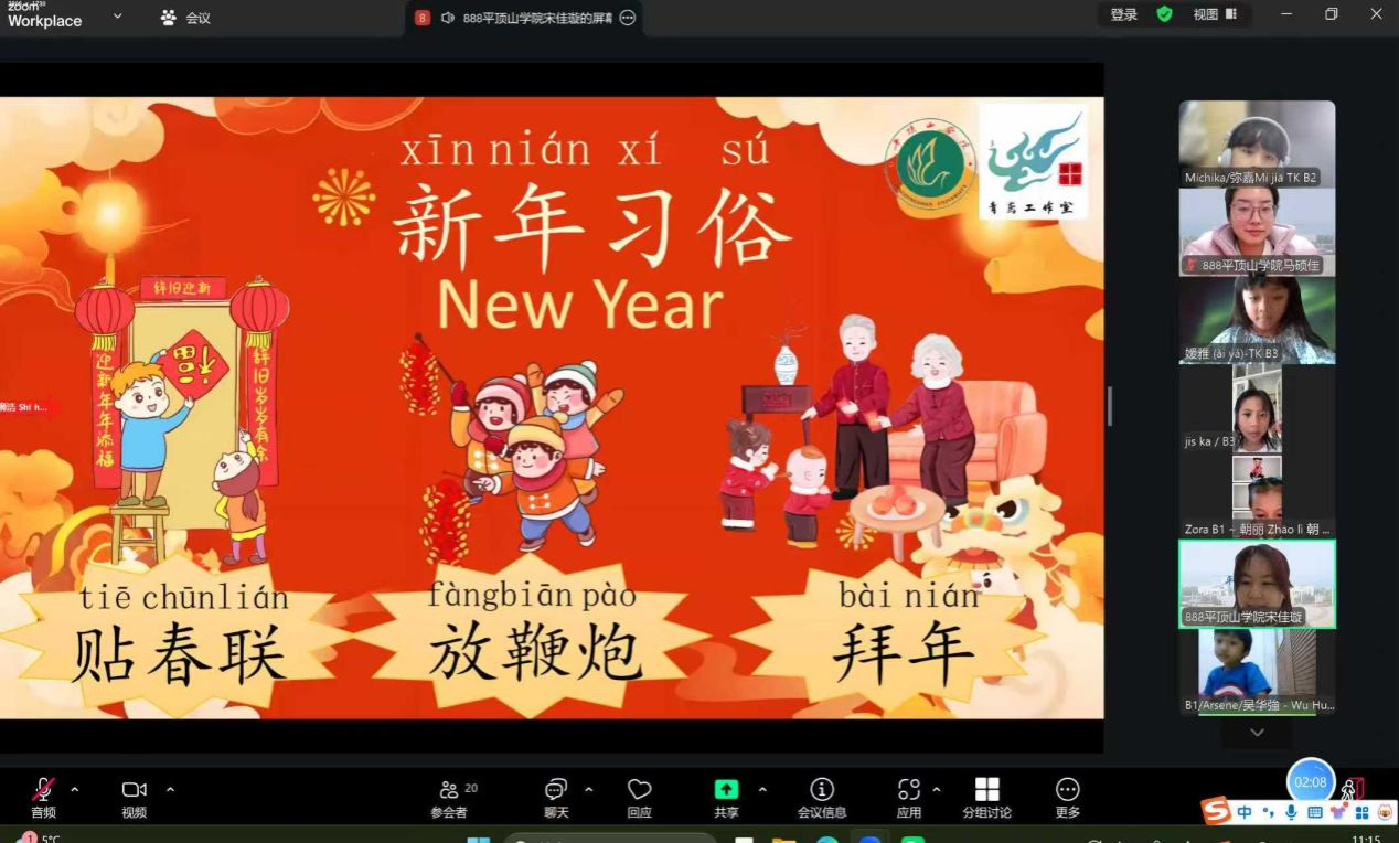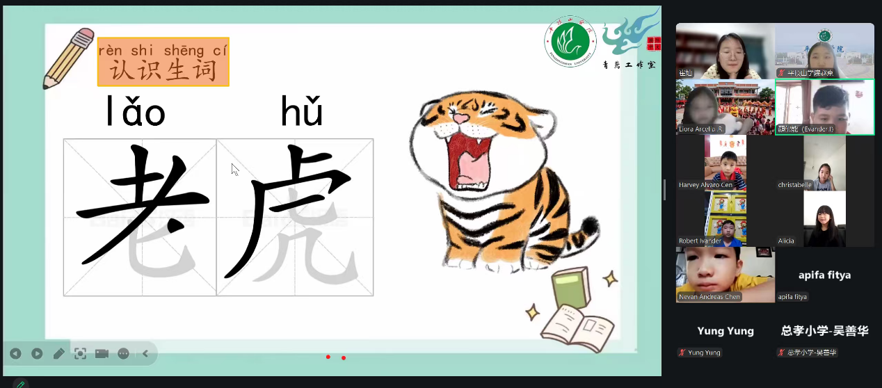 本学期为备战第九届全球华语朗诵大赛,团队专门面向美国学习者精准设计了华语朗诵课程。志愿者教师根据大赛要求,围绕朗诵语言、朗诵效果、主题内容、演讲技巧等展开教学,为参赛选手量身选择了兼具隽永诗意和良好朗诵效果的三苏诗词,开展“集体指导+一对一指导”教学,实现了学习者演讲能力提高和诗词文化浸润的双丰收。教学团队为印尼五所华校七个班级开设了中文口语课,他们结合儿童认知特点,将中国十二生肖、中国春节习俗等文化内容融入课堂,通过情景对话、动画演示、图片放映等趣味形式教授基础中文口语,让印尼各地区的幼儿在快乐学习中感受中国民俗的独特魅力。