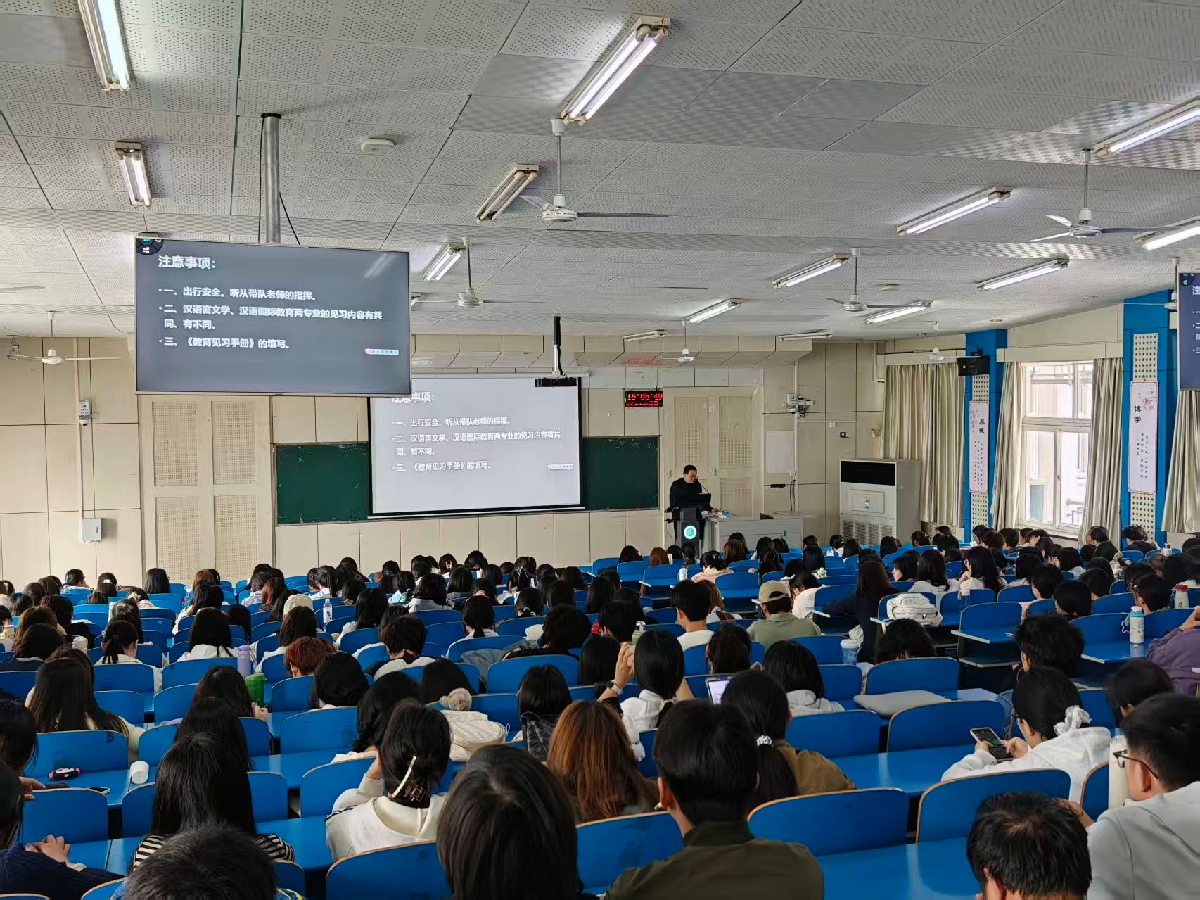 4月20日下午,文学院召开2023级师范专业教育见习动员会。副院长杜彬彬作动员讲话,汉语言文学、汉语国际教育专业全体学生参加。