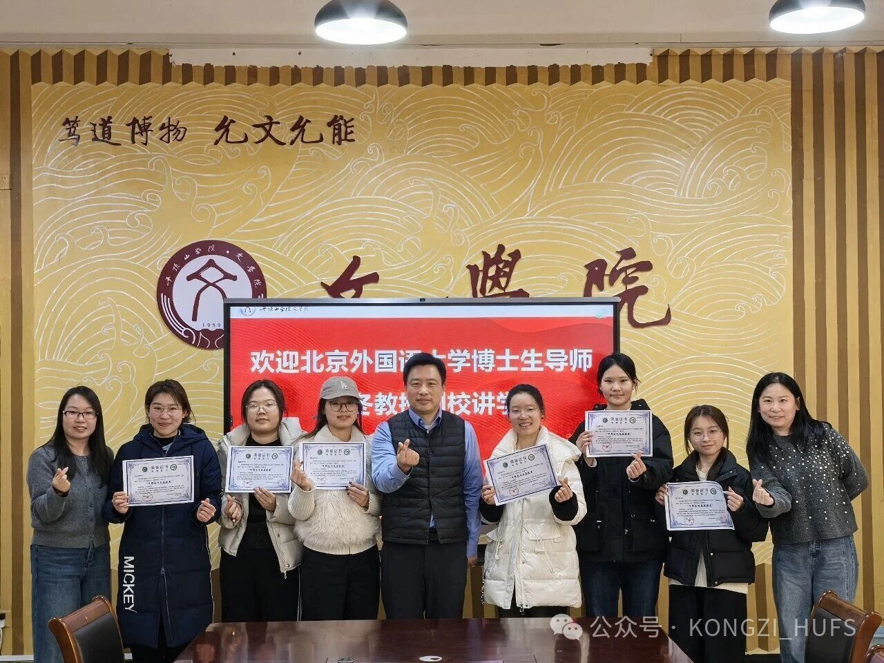 报告开始前,闫冬与杜彬彬共同为2025年中韩文化交流会获奖同学颁发证书。